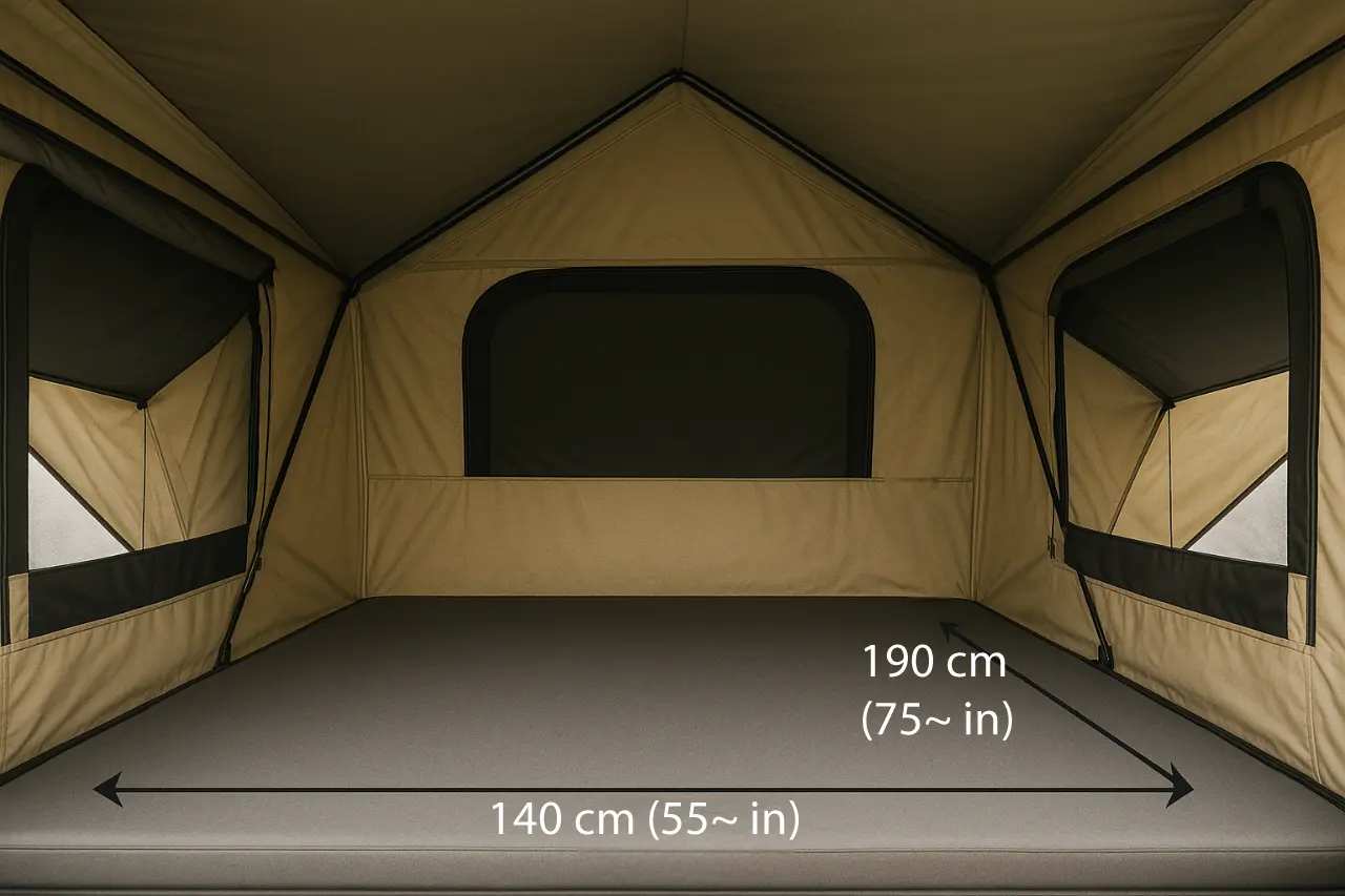 This is one of our 4-person rooftop tents. Here are the specifications of this rooftop tent.